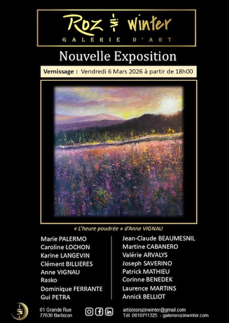 Jean-Claude expose trois toiles avec des artistes sélectionnés par la directrice de la Galerie, Lila Roz, dans le très célèbre village, Barbizon en Seine et Marne. Des expositions collectives organisées toute l’année, et qui réunissent des peintres, sculpteurs et photographes !